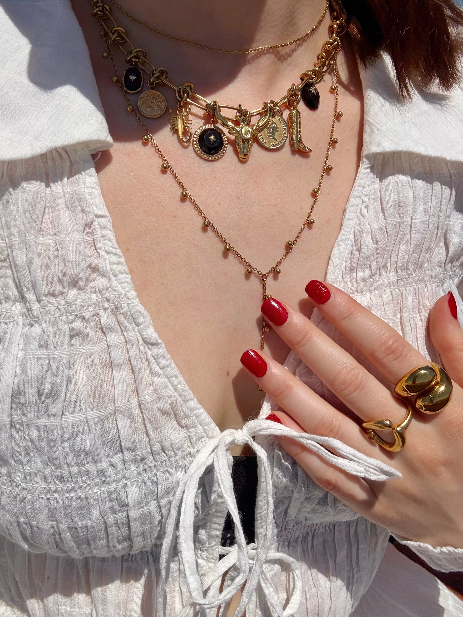 Ce collier à breloque est en acier inoxydable et assemblé à la main 🫶🏻