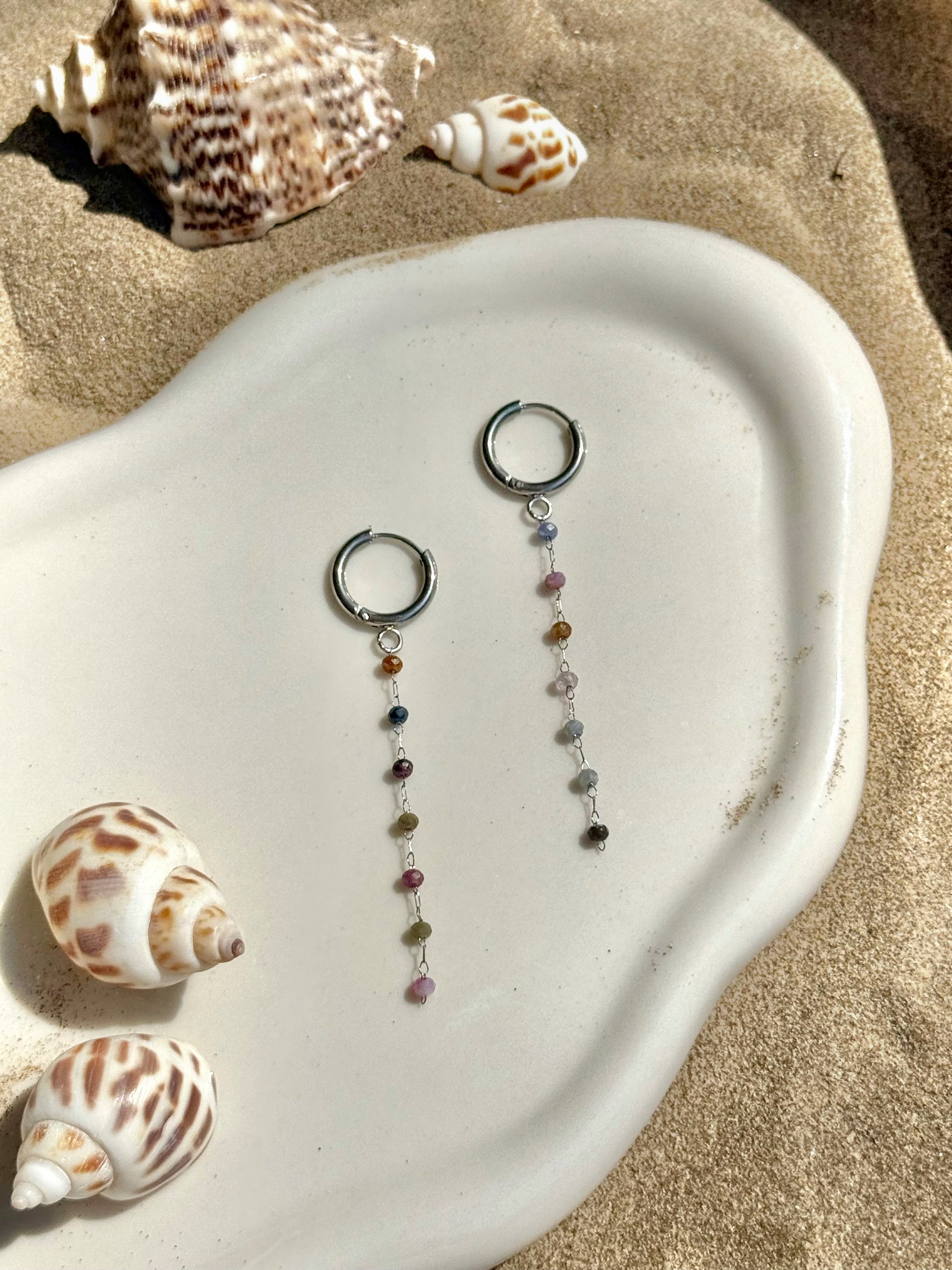 Ces Créoles en acier inoxydable sont associer à une chaîne de perle en Tourmaline ✨