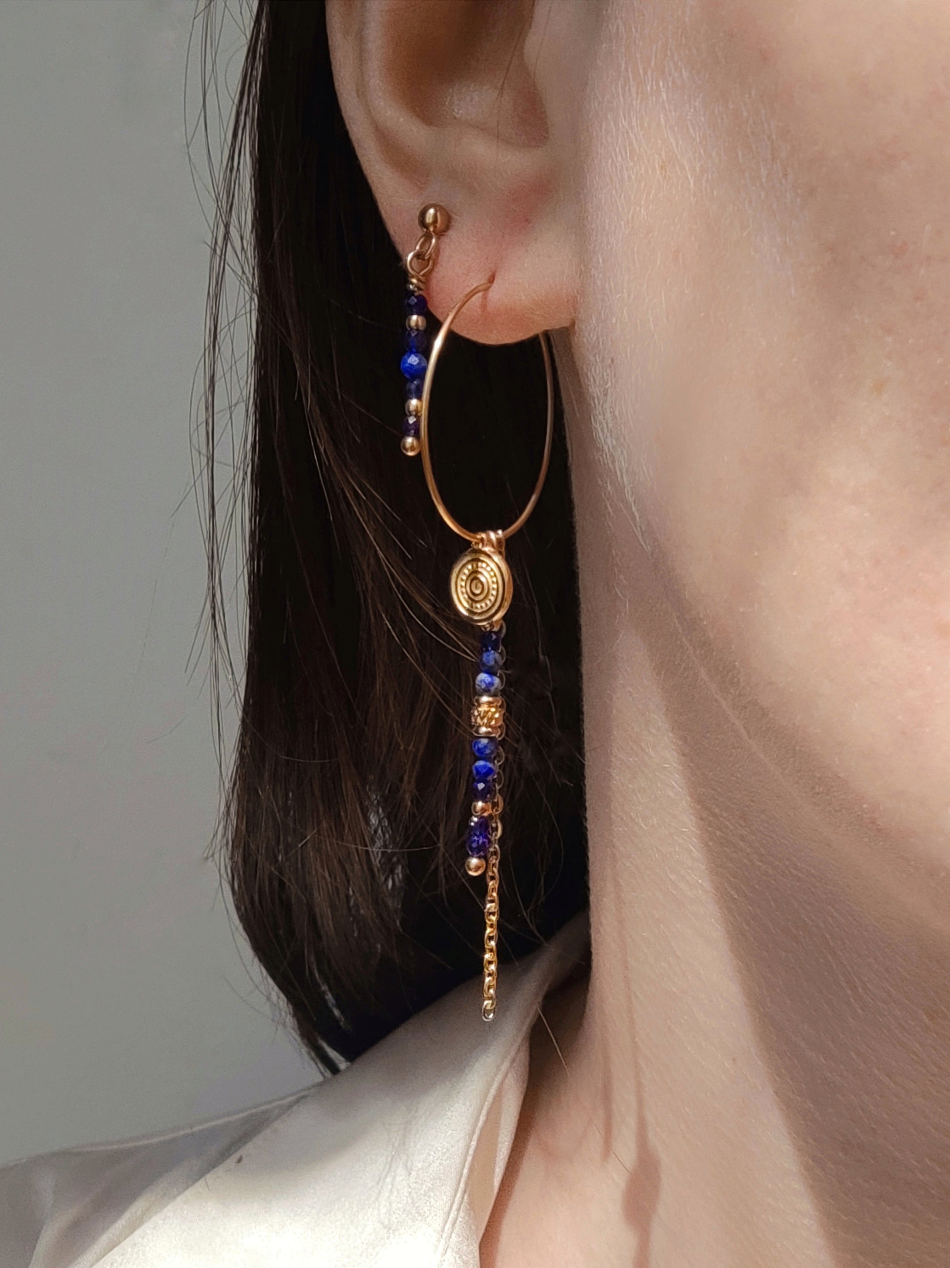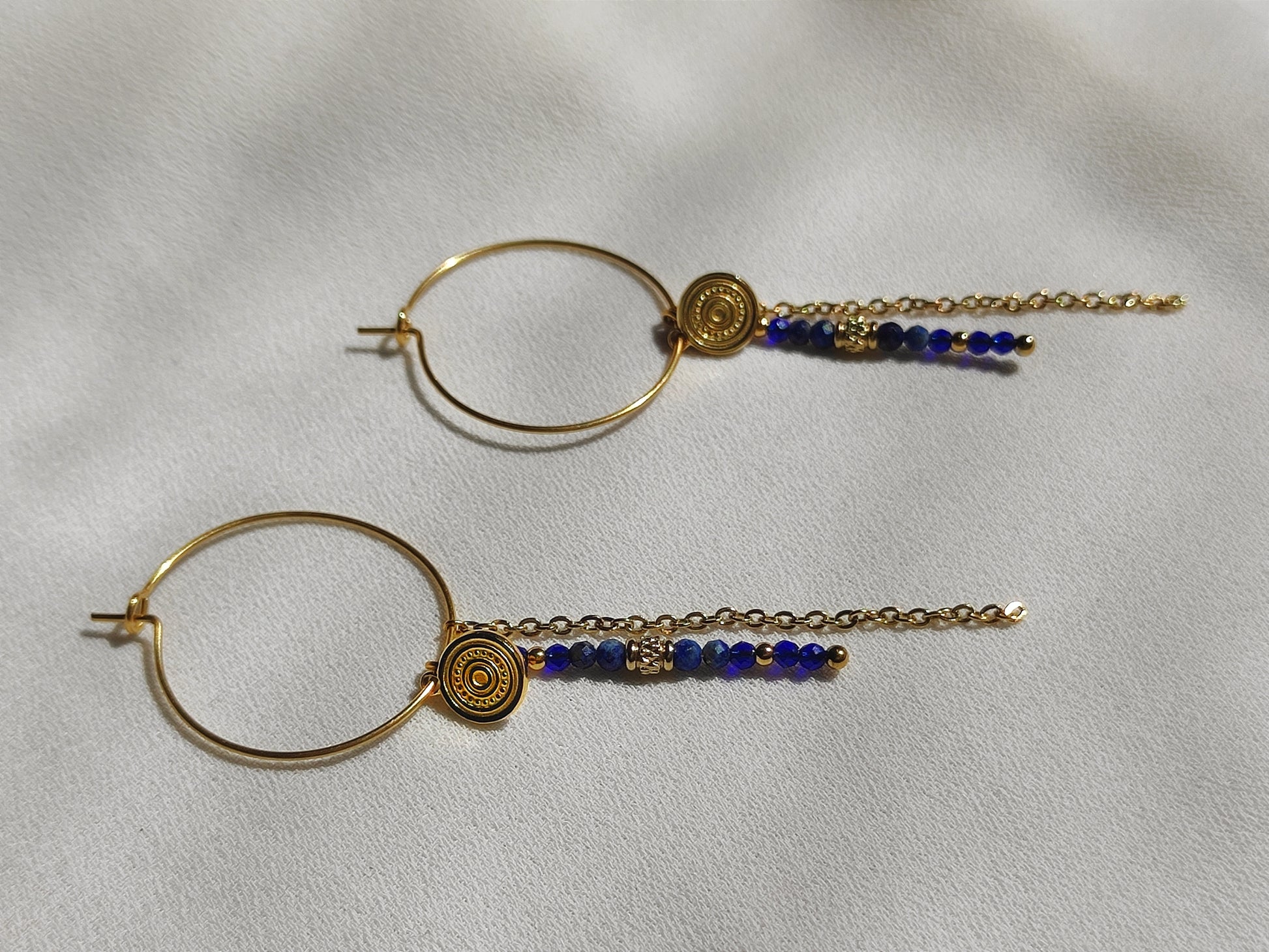 Ces Créoles sont en acier inoxydable et en pierre naturelle en lapis lazulis ✨